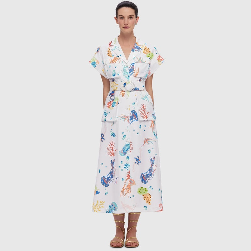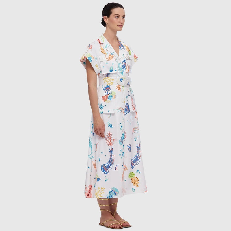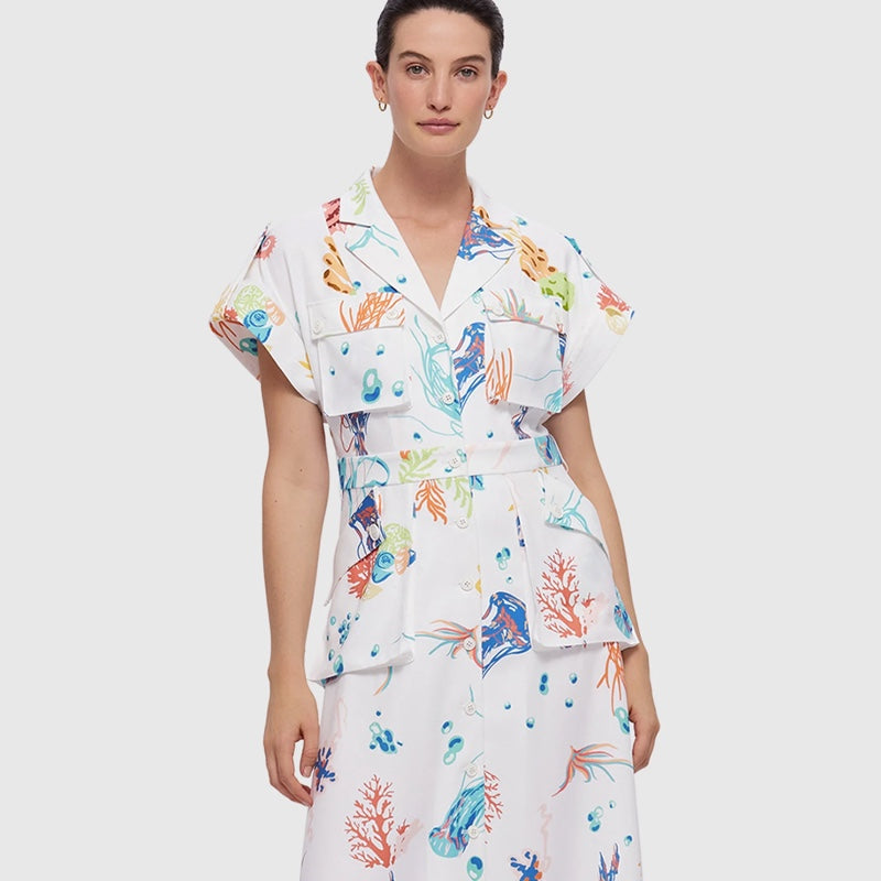 Audrey Pocket Shirt Midi Dress - Twilight Print in White