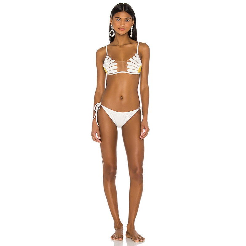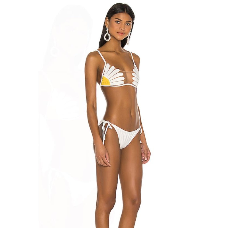Hand wash cold. Unpadded. Back tie closure. Two-piece set. Side tie closure.