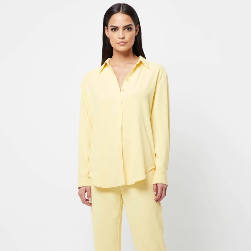 Produced in a beautiful lemon hue, this relaxed shirt will carry you through the seasons in style. Our Elusive Shirt features a collared neckline, a concealed button through front and cuff sleeves. For a playful ensemble, pair with the Elusive Pant.