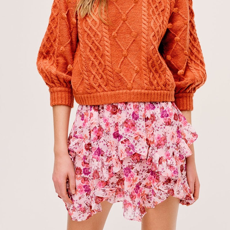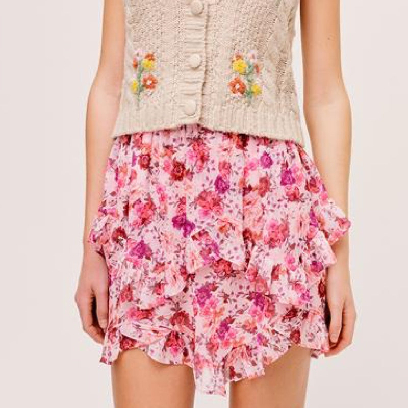 Fully lined. Elastic waistband. Tiered chiffon fabric. Skirt measures approx 46 cm in length.