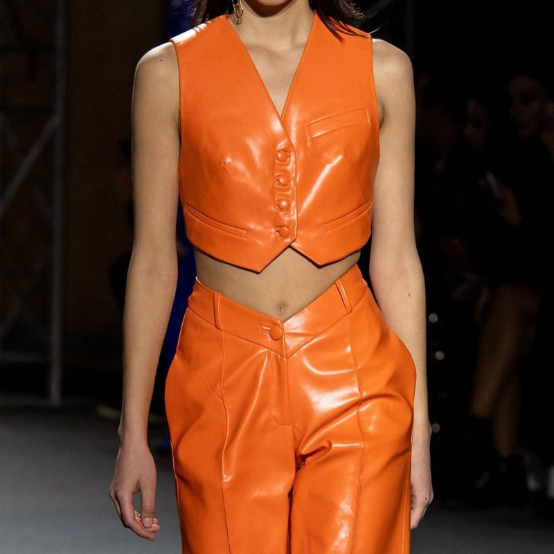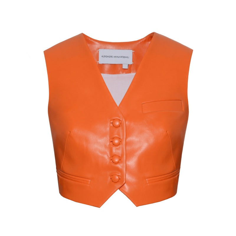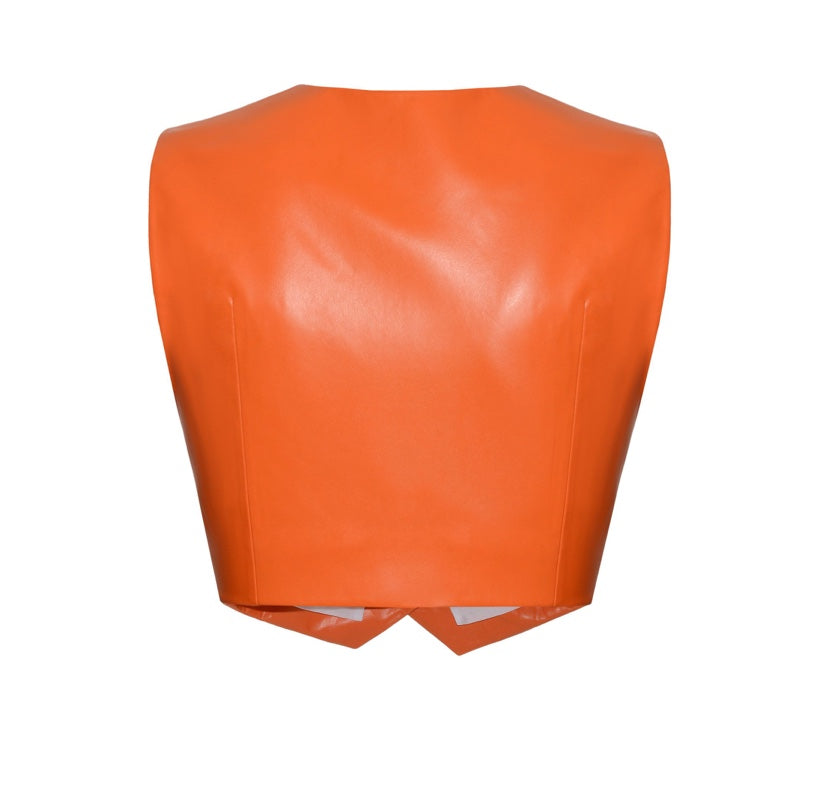 Faux Leather Cropped Vest in Orange Color