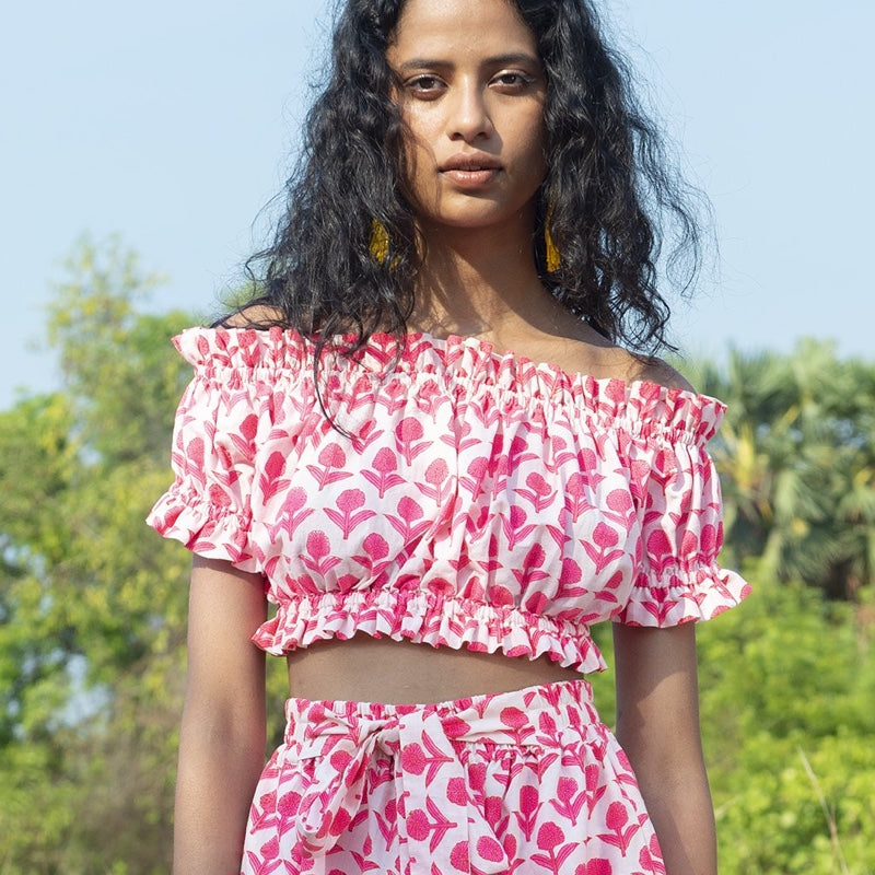 Fern Top fits true to size. It has comfortable elastic on the shoulder/neck, arms and waist.