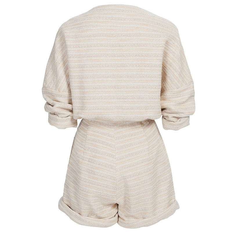 The Florence Utility Jumpsuit is made from a beautiful textural cotton blend tweed. This style is fully lined and features double-breasted front buttoning and frayed edge trim. The jumpsuit has front pant pockets as well as a left chest button-enclosed pocket. Pair it with your favourite white sneakers for an effortless look, or an espadrille for a more elevated event.