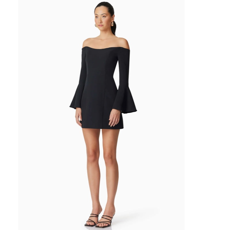 - Off-shoulder A-line mini dress with dramatic appeal