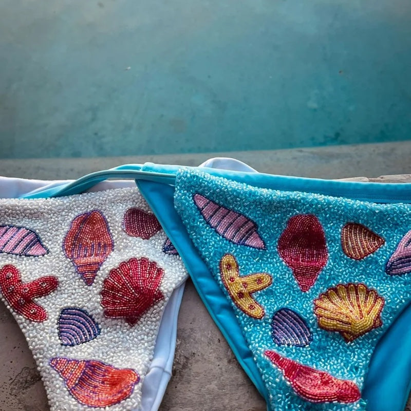 Elevate your beach style with this limited edition stunning sea hand-beaded bikini.