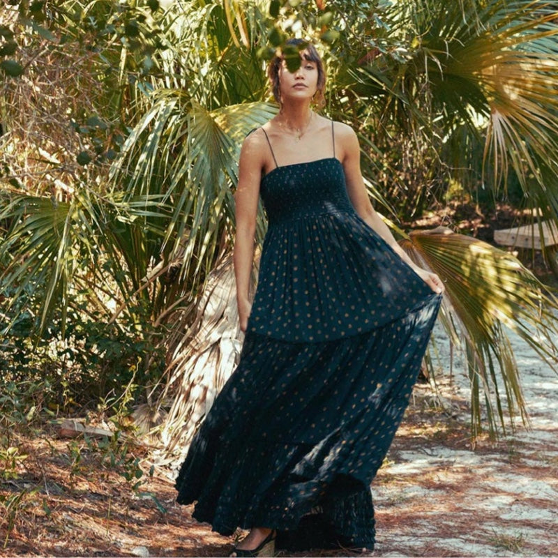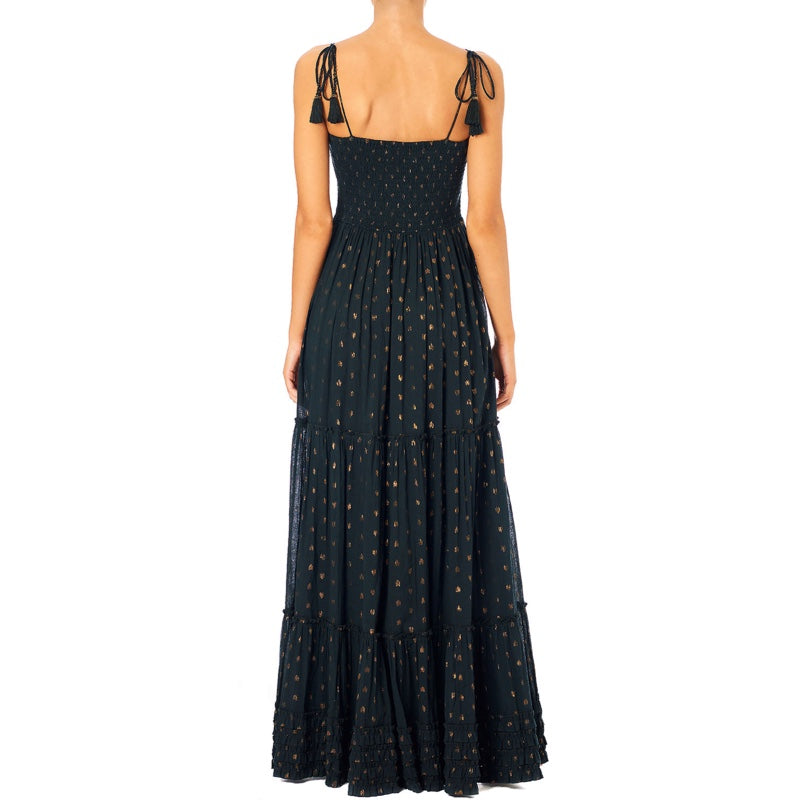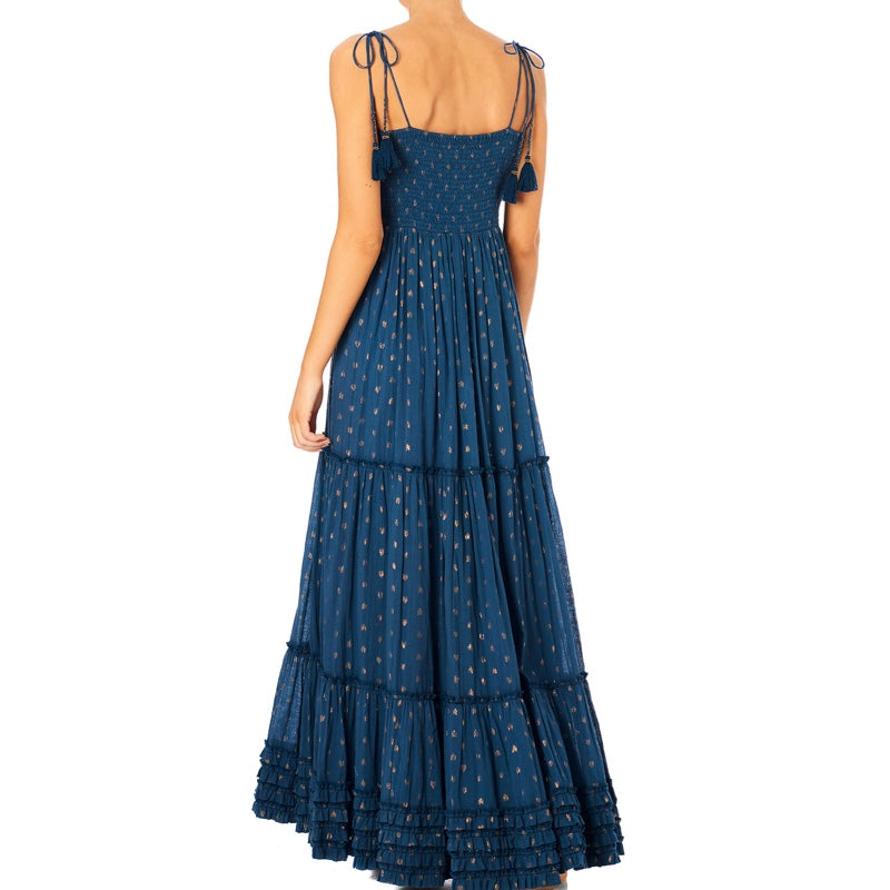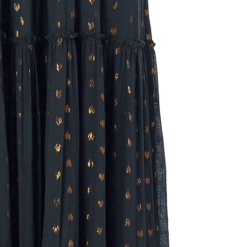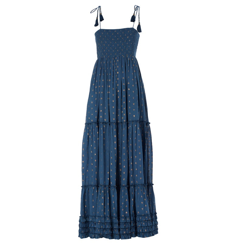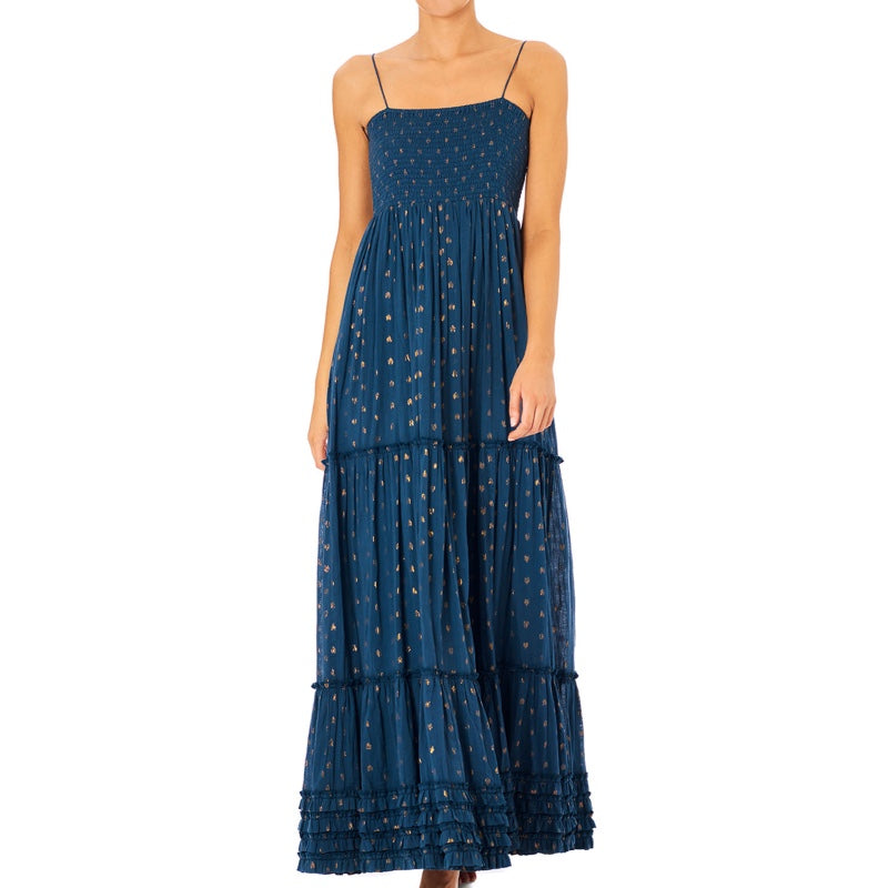 Lurex detailed tiered maxi dress, this exquisite Livia Frill Maxi Dress by M.A.B.E is the perfect maxi dress. A subtle design and a dreamy ruffled hem. A stunning dress for the new season with an oh-so-feminine eye. It has a relaxed silhouette.