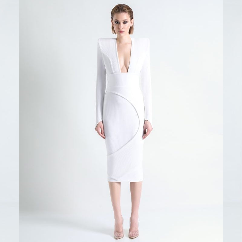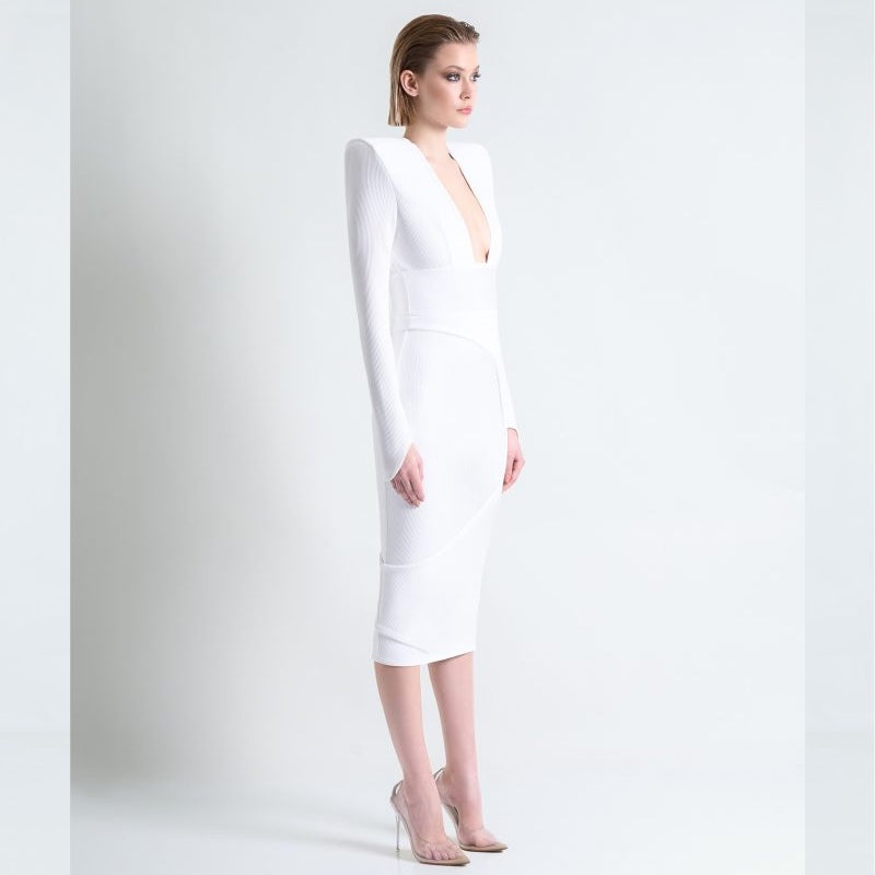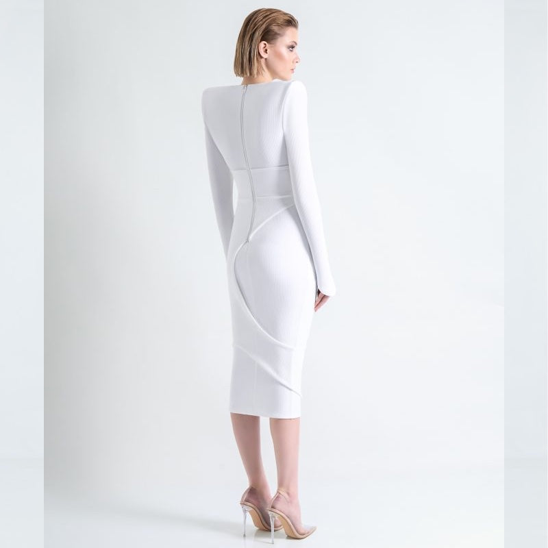 A Ribbed Cotton Easy Fit Midi Dress with Skirt Overlay & Shoulder Accents