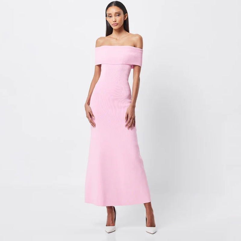 Cut from a high quality crepe knit fabric, the Monaco Off Shoulder Midi Dress has a bardot neckline, accentuated by an overlay detail at the bust. This dress is fitted through the torso with a slightly flared skirt. Perfect for day or night events, this dress only requires simple accessories to create a polished and sophisticated look. Mossman recommends you store this dress folded over a standard hanger rather than hanging by the straps.