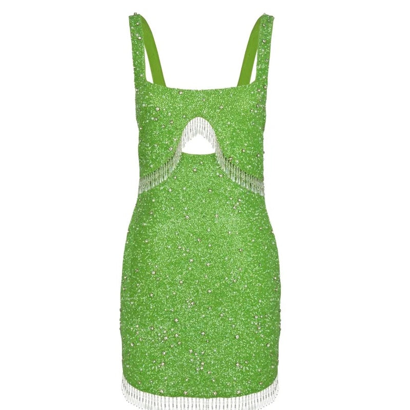 Artemis Green Beaded Tasseled Mini Dress – Daphne x Oceanus - XS