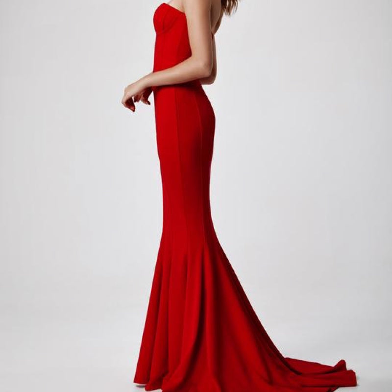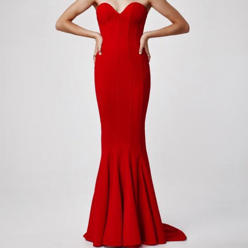 The Sahar is combination of two of LEXI's bestselling features in one; the floor length mermaid silhouette and our vertical boning to elongate. The thick textured jersey fabric hugs you in all the right places and ensures a smooth overall finish. The strapless design features moulded mermaid cups and a puddle train which forms beautifully from the thick Jersey fabric