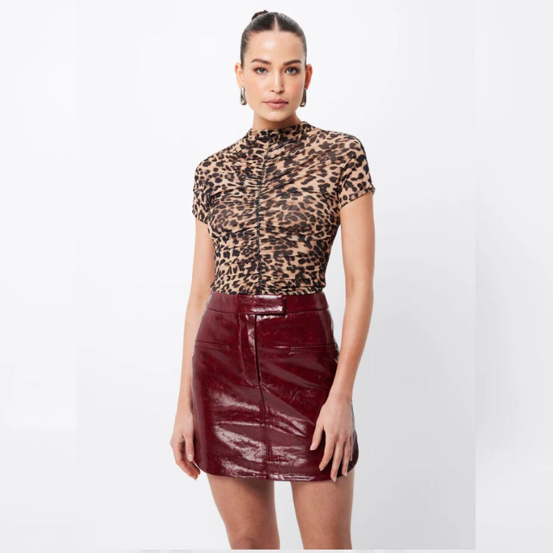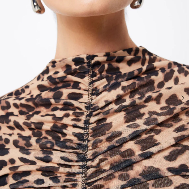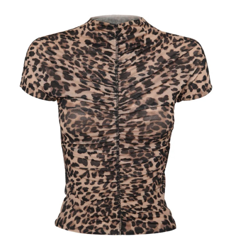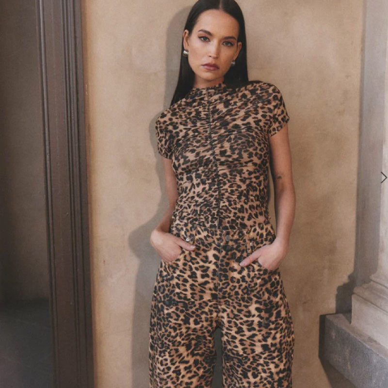 The Prowl Top in Leopard Print is a bold take on the body-con trend. This double-layered mesh top is detailed with a high neckline, cap sleeves, and centre-front ruching, complemented by visible seam accents for texture. Style it with your favourite denim for chic weekend style or pair with the Prowl Mini Skirt for a daring co-ord ensemble.
