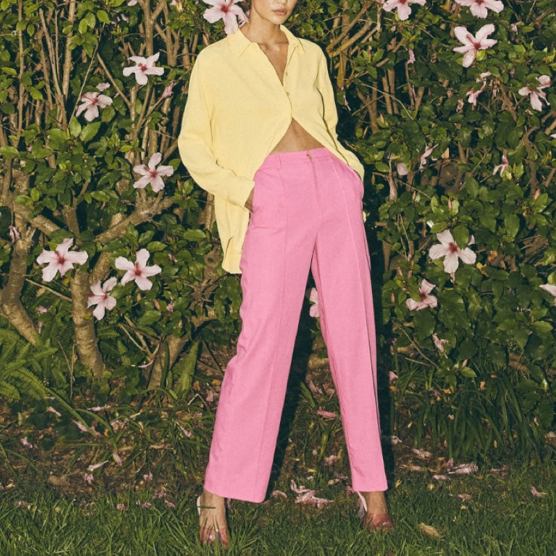 Offering a classic straight leg silhouette rendered in a vivid pink hue, the Rebalance Pant is simple yet striking. This design features a high waist rise with belt loops, front design seams and functional side pockets. Style with our Give or Take Top for a desk to dinner attire
