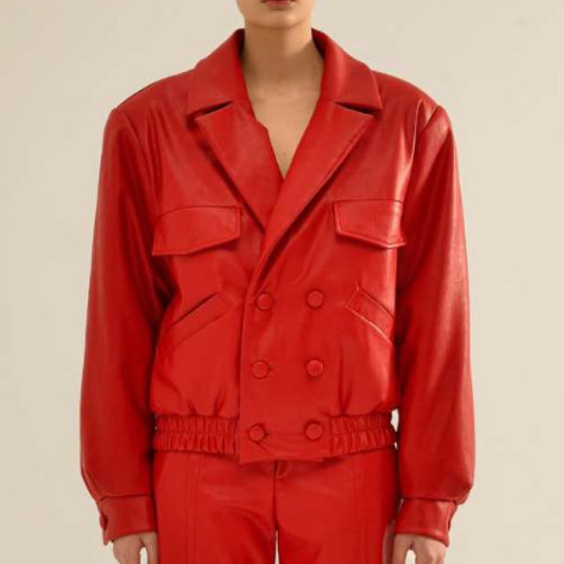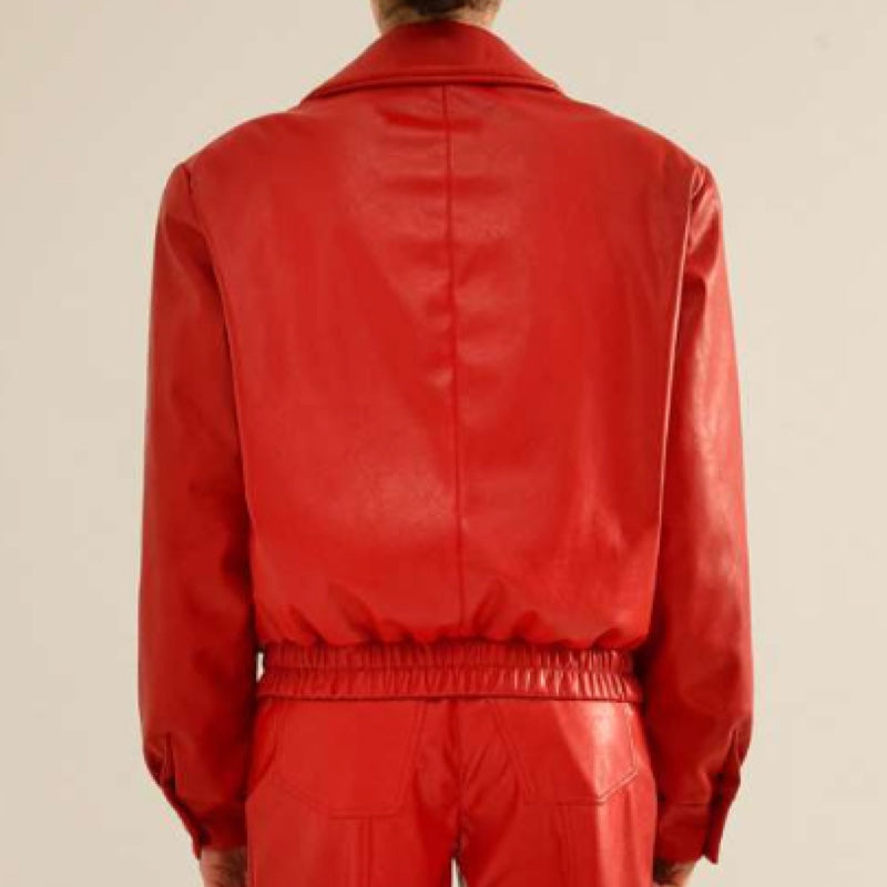 Red Vegan Leather Bomber Jacket