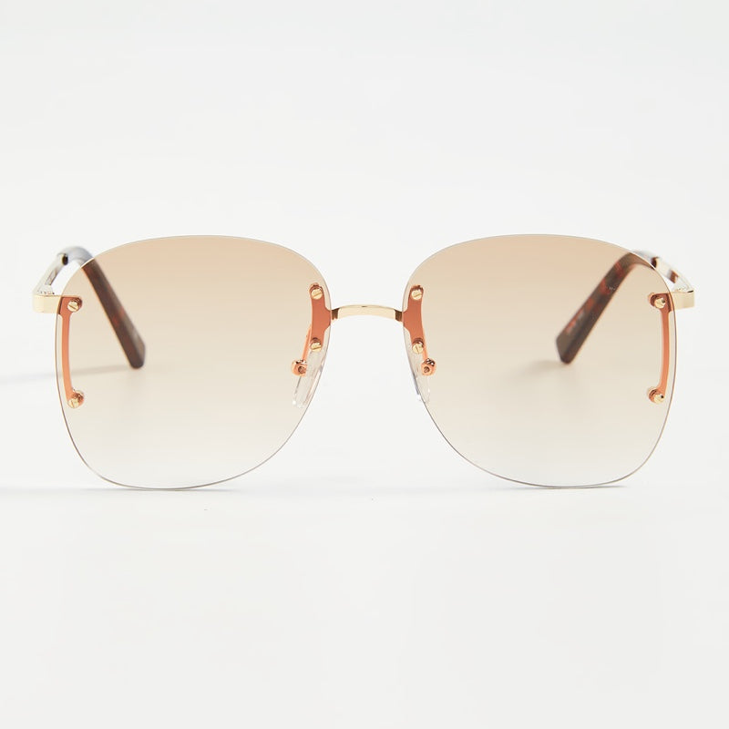 Oversized in its proportions, rimless silhouette Skyline sunglasses combines the glamour of the seventies with a bold eighties attitude. Fitted with spring hinges for maximum comfort.